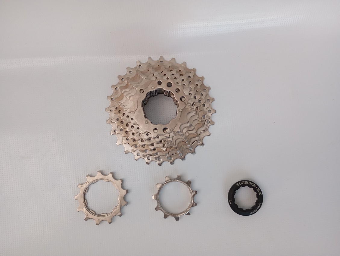 Brand new Sunshine SZ 9 speed cassette. 11-28T, compatible with Shimano drivetrains.