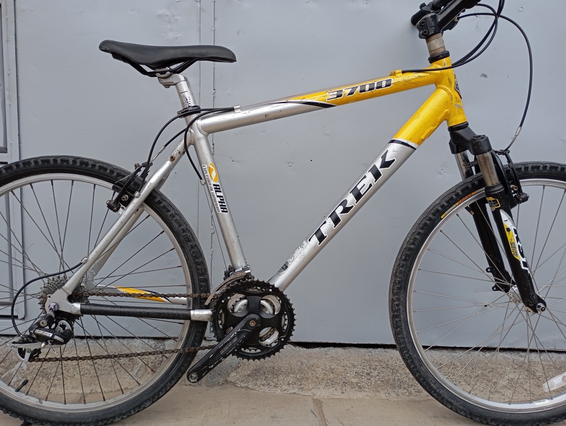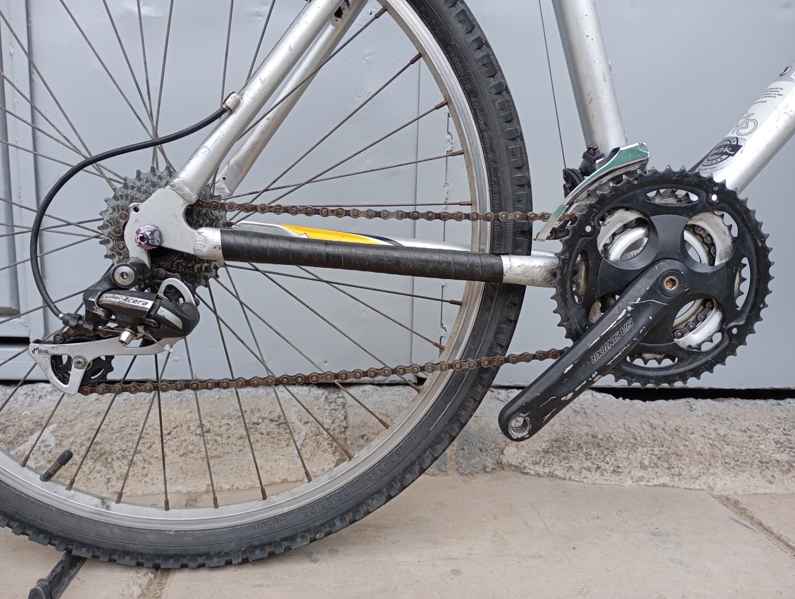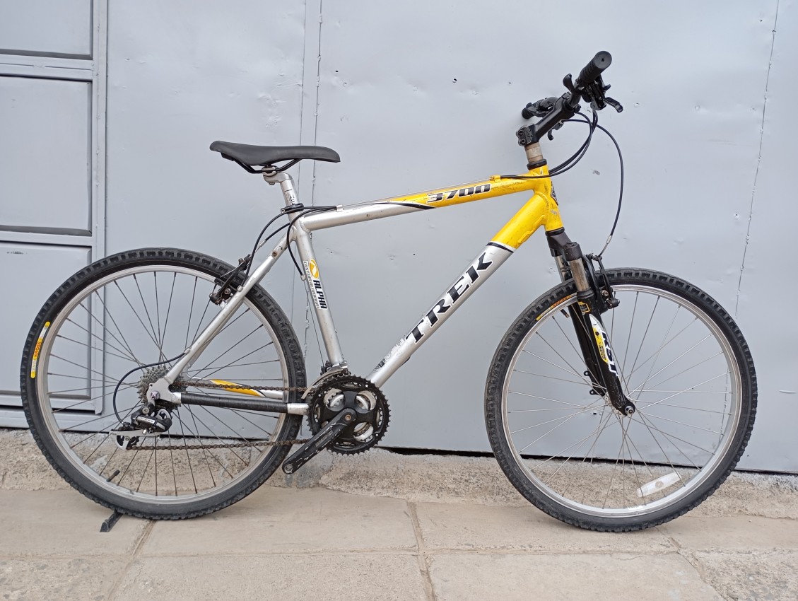 High quality used mountain bike. Wheel size 26. Frame material Aluminium with aluminium front suspension fork. Top tube 22', seat tube height 19.5'. Gear system 3x7 with shimano trigger shift brake lever. Cog type freewheel. Other features: sealed BB all wheels have quick release, steel threadless suspension fork.