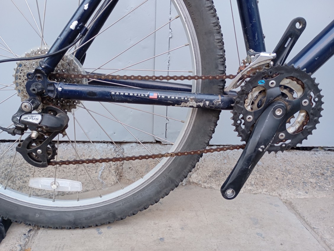 High quality used mountain bike. Wheel size 26. Frame material Aluminium with aluminium front suspension fork. Top tube 21.5', seat tube height 19.5'. Gear system 3x8 with shimano trigger shifter. Cog type cassette Other features: sealed BB all wheels have quick release, alloy threadless suspension fork.