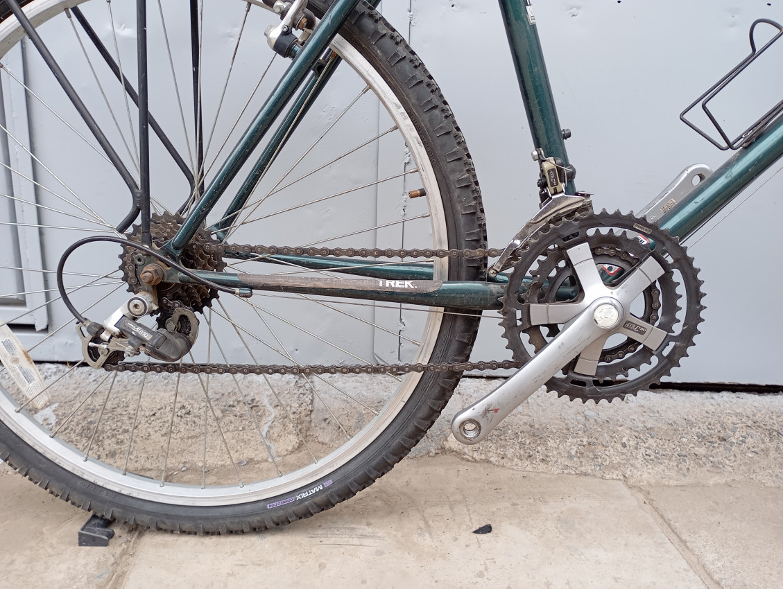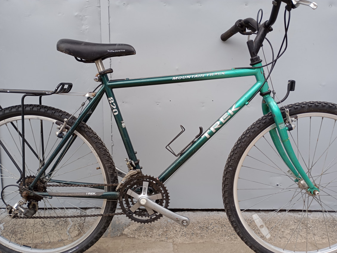 High quality used mountain bike. Wheel size 26. Frame material steel with steel fork. Top tube 22', seat tube height 19'. Gear system 3x7 with grip shift. Cog type freewheel. Quick release on front wheel & sealed BB