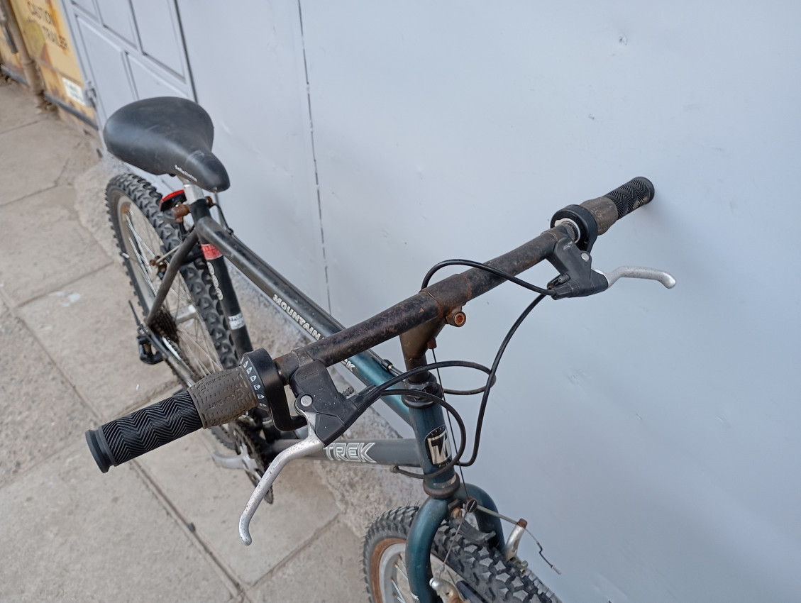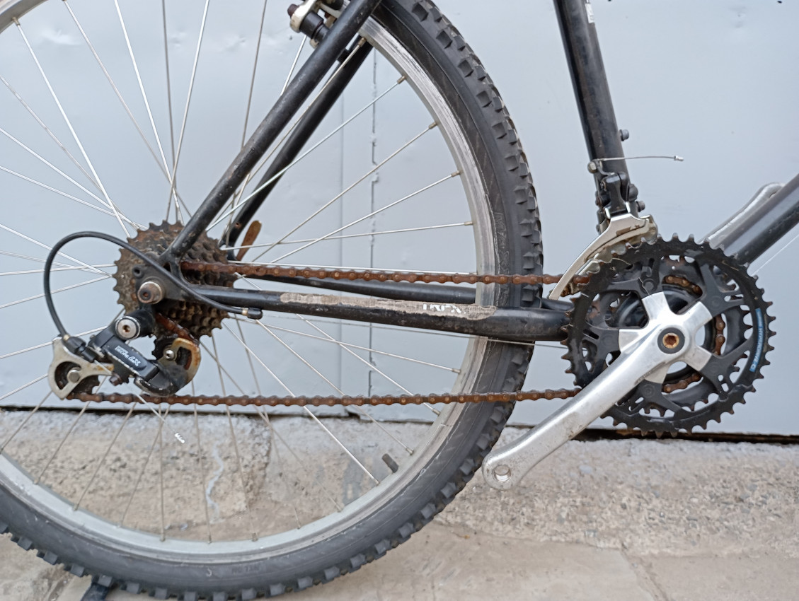 High quality used mountain bike. Wheel size 26. Frame material steel with steel fork. Top tube 22', seat tube height 19'. Gear system 3x7 with grip shift. Cog type cassette. Quick release on rear wheel & sealed BB