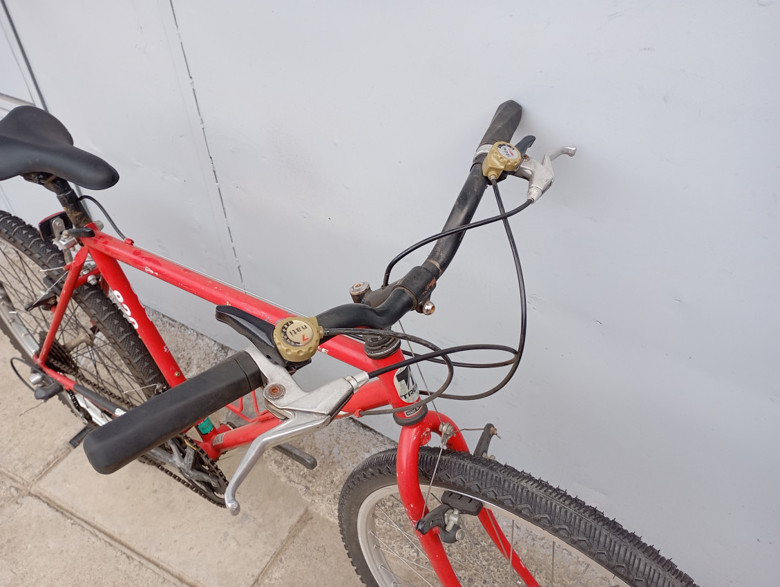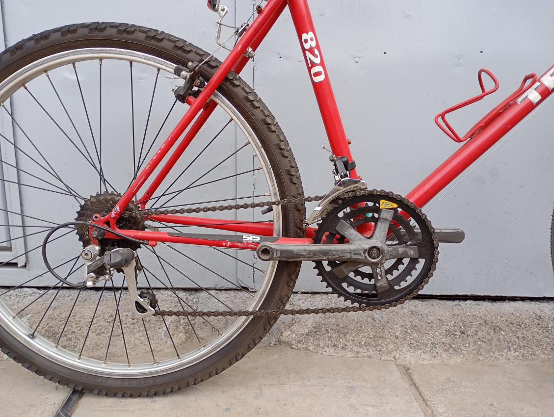 High quality used mountain bike. Wheel size 26. Frame material steel with steel fork. Top tube 22', seat tube height 18'. Gear system 3x6 with thumb shift. Cog type cassette. Quick release on both wheels.