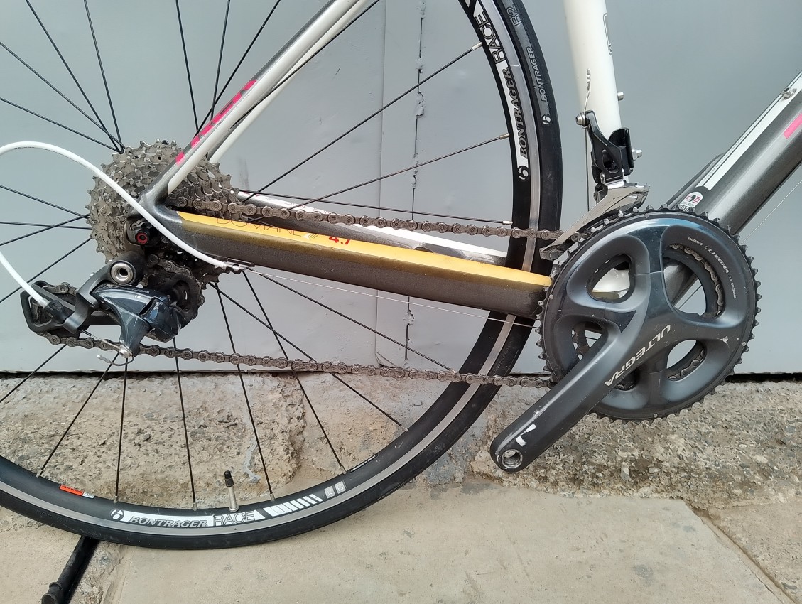 High quality used race bike. Wheel size 700c. Full Carbon Frame with carbon fork.Top tube 50cm, seat tube height 46 cm. Gear system, Shimano ultegra, 2x11. Cog type cassette. Other features: HT2 BB, all wheels have quick release. Carbon seat post.