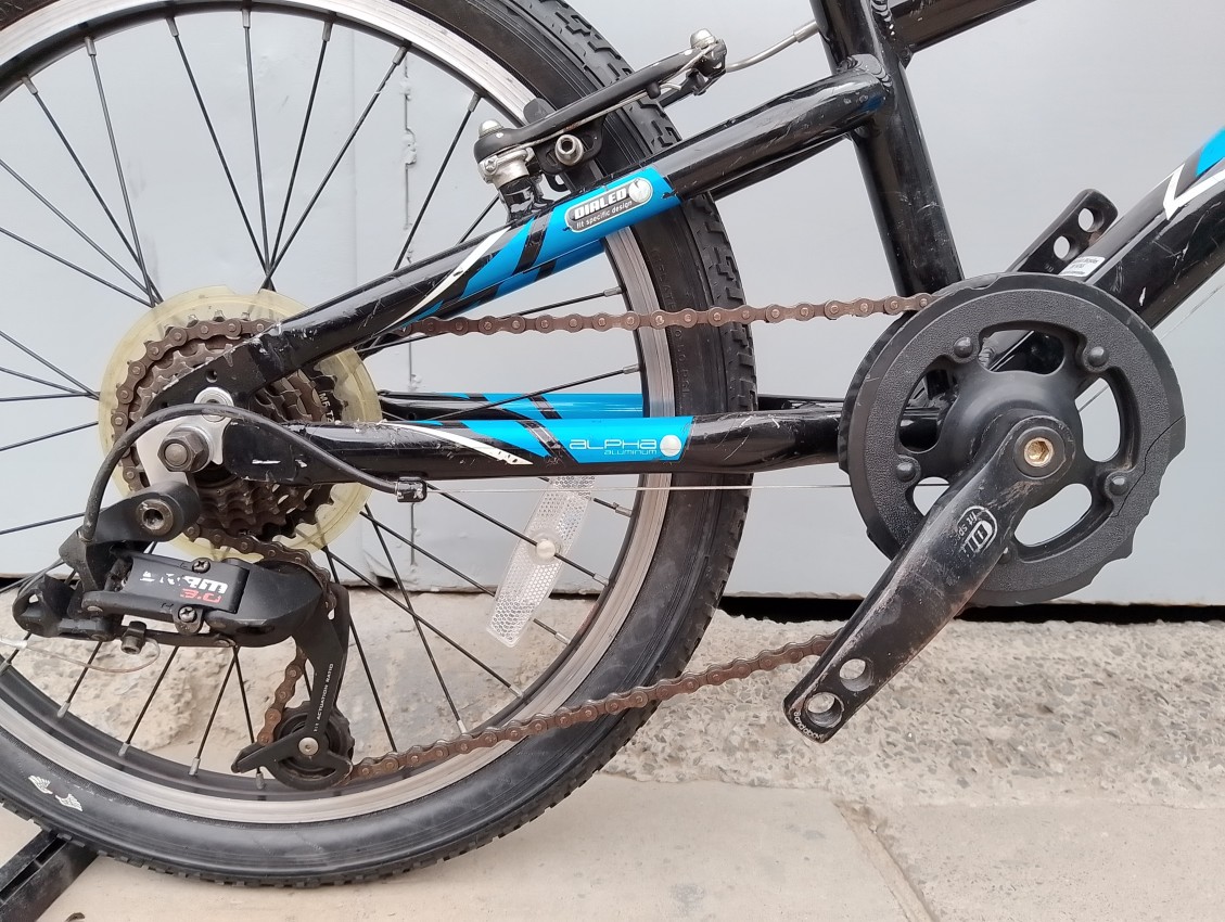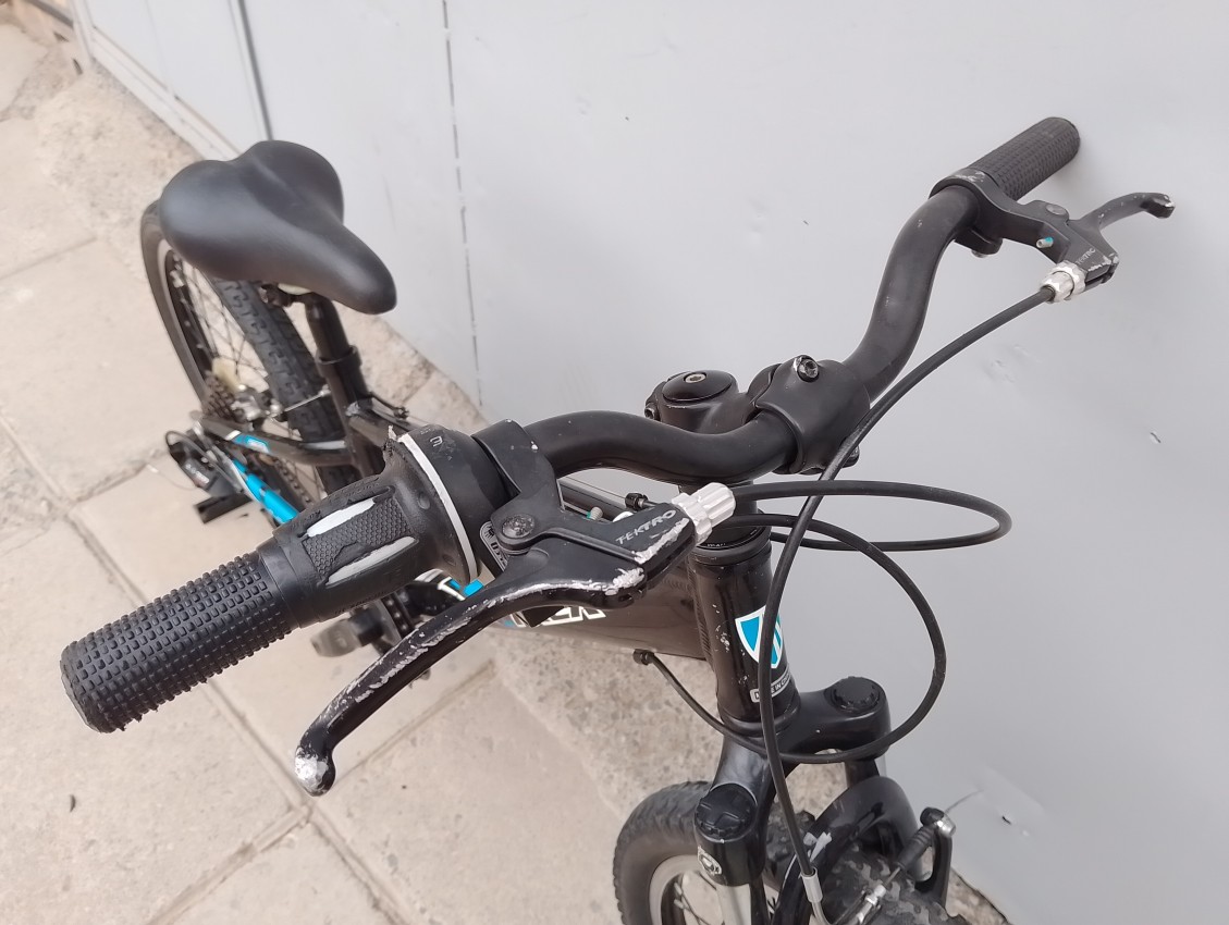 High quality used mountain bike. Wheel size 20 Frame material aluminium. Gear system 1x6 speed with grip shifters. Cog type freewheel. Other features: threadless suspension fork, Suitable for ages 6-11 years.