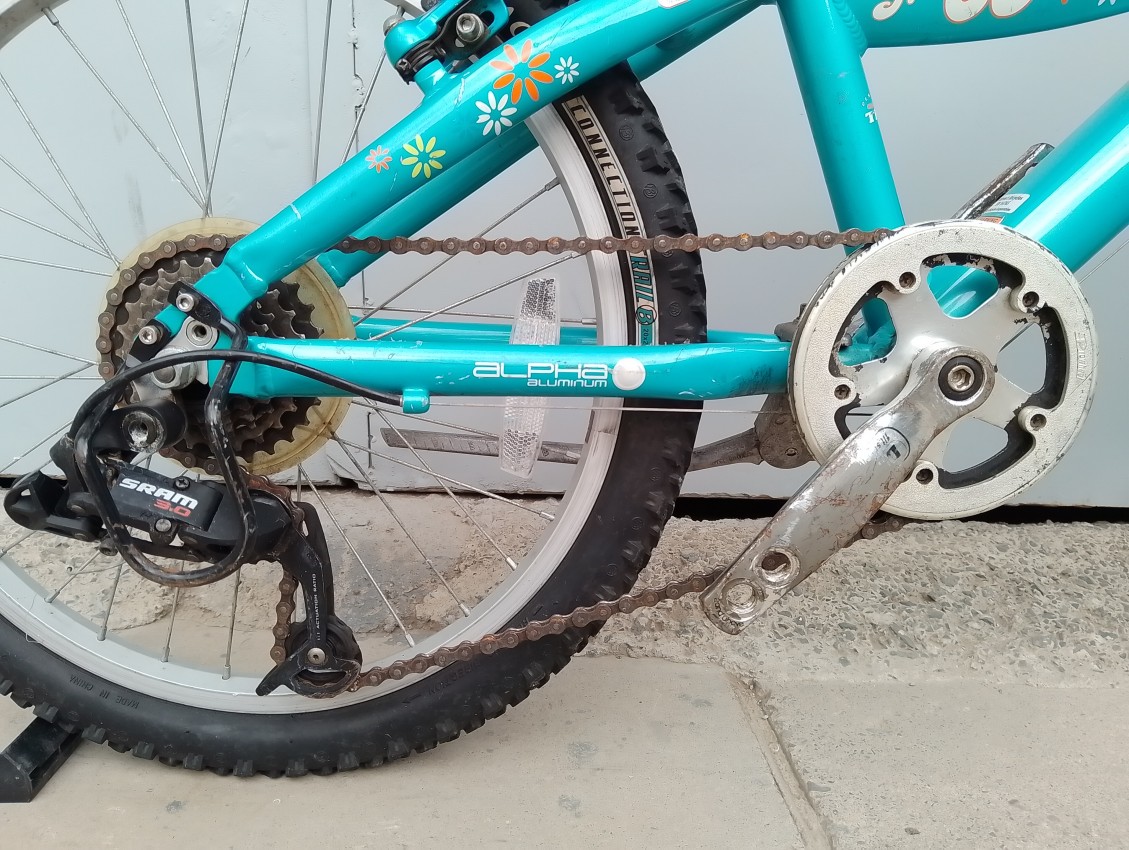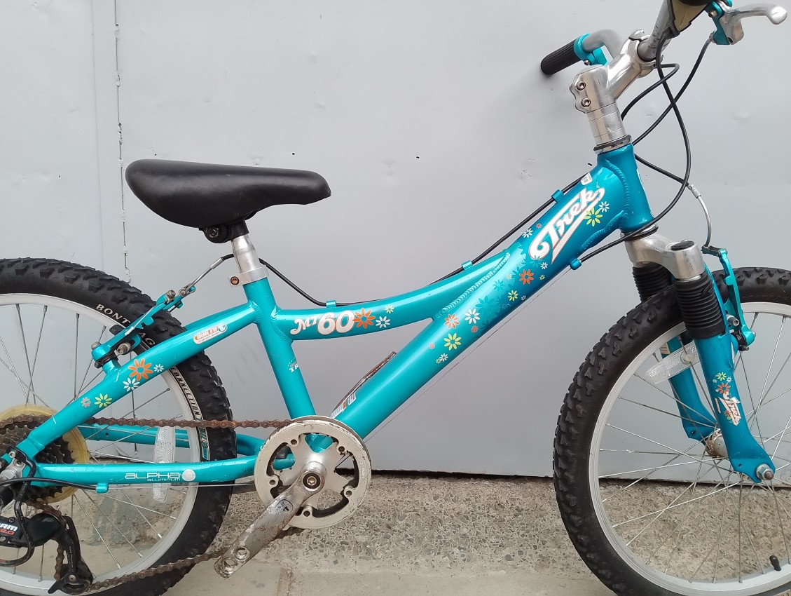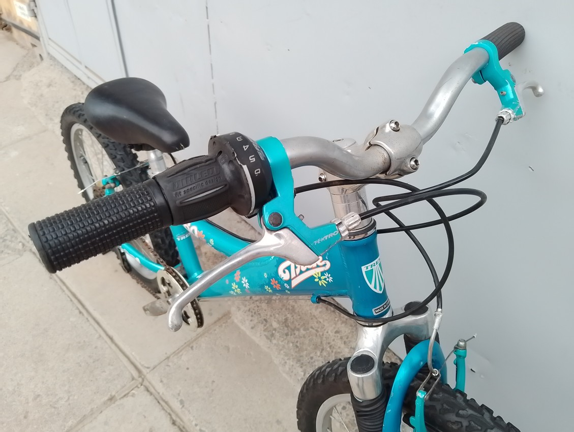 High quality used mountain bike. Wheel size 20 Frame material aluminium. Gear system 1x6 speed with grip shifters. Cog type freewheel. Other features: threadless suspension fork, Suitable for ages 6-11 years.
