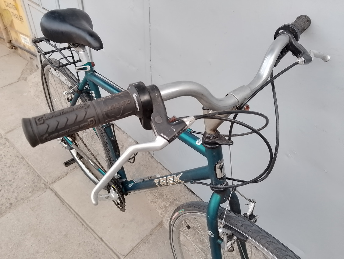 High quality used hybrid bike. Wheel size 700c. Frame material steel.Top tube 22', seat tube height 21'. Gear system 3x7 with trigger shifts. Cog type cassette. Other features: all wheels have quick release.