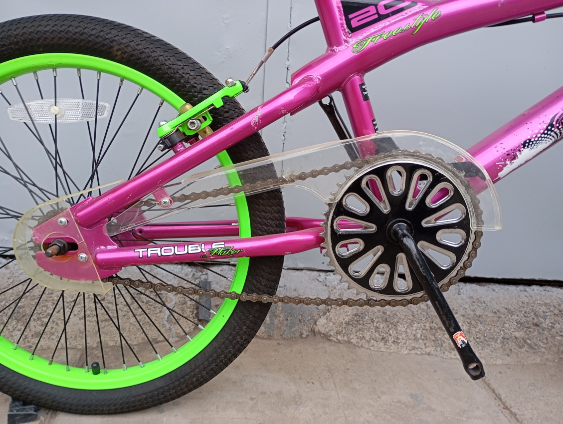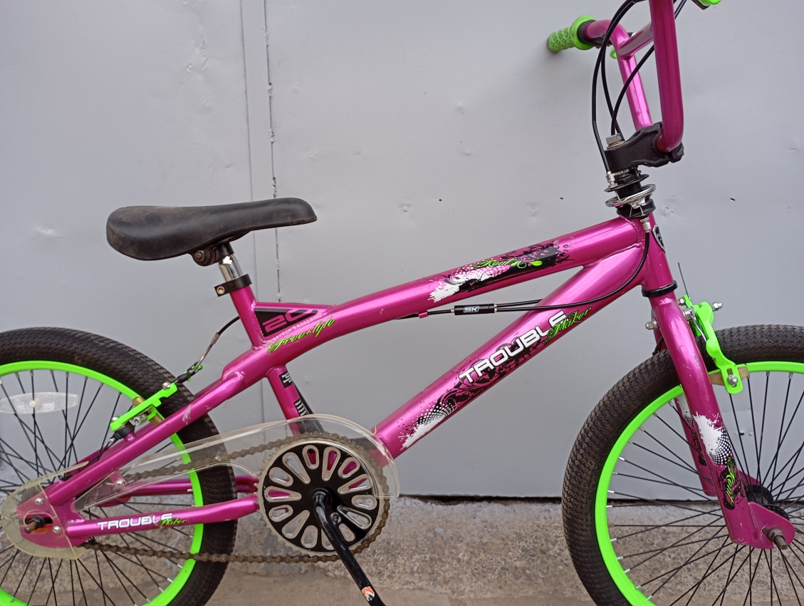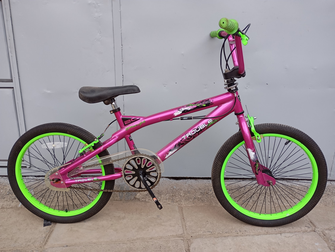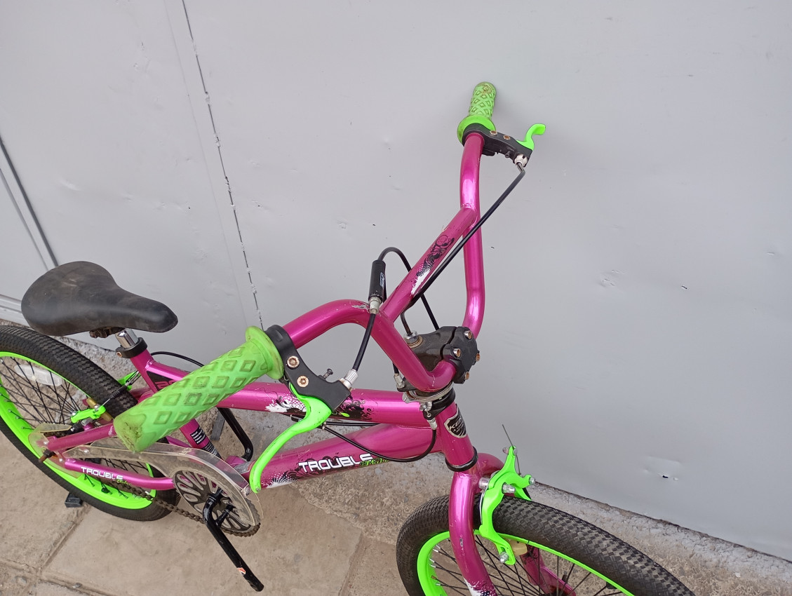 High quality Used BMX stunt bike, wheel size 20, frame material steel. Drive train; single speed. With a functioning 360 rotor and brake system.