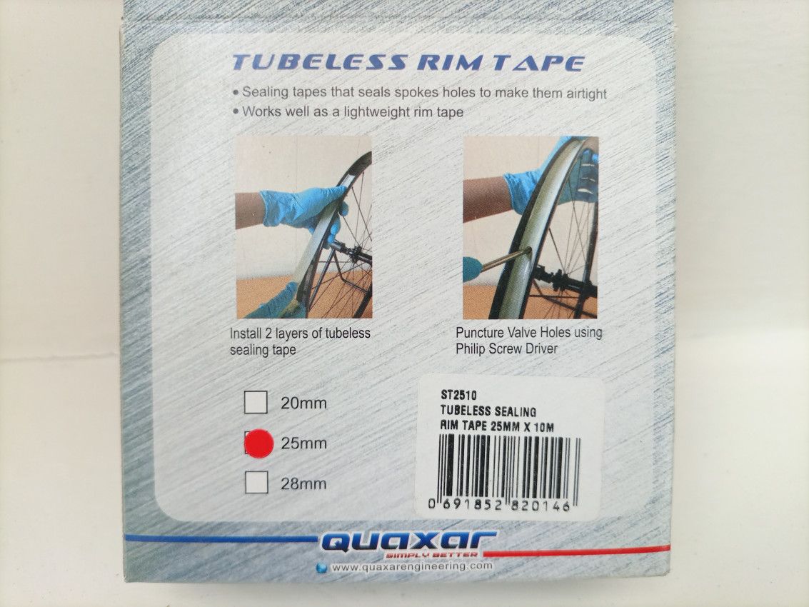 Brand new Quaxer tubeless sealing rim tape for MTB rims. 25mm x10m.