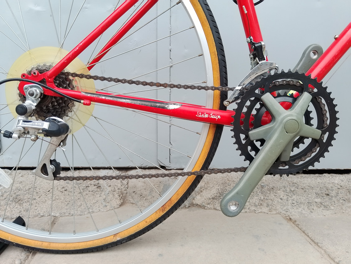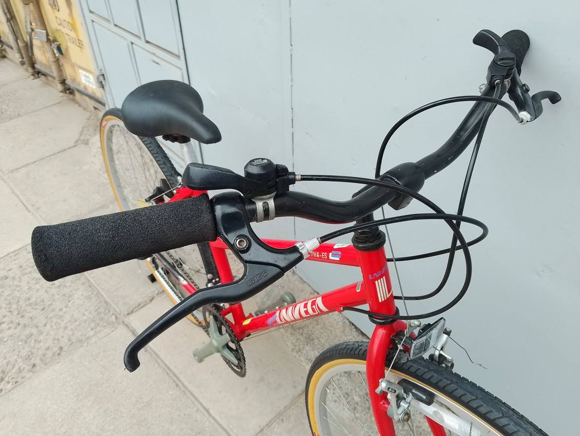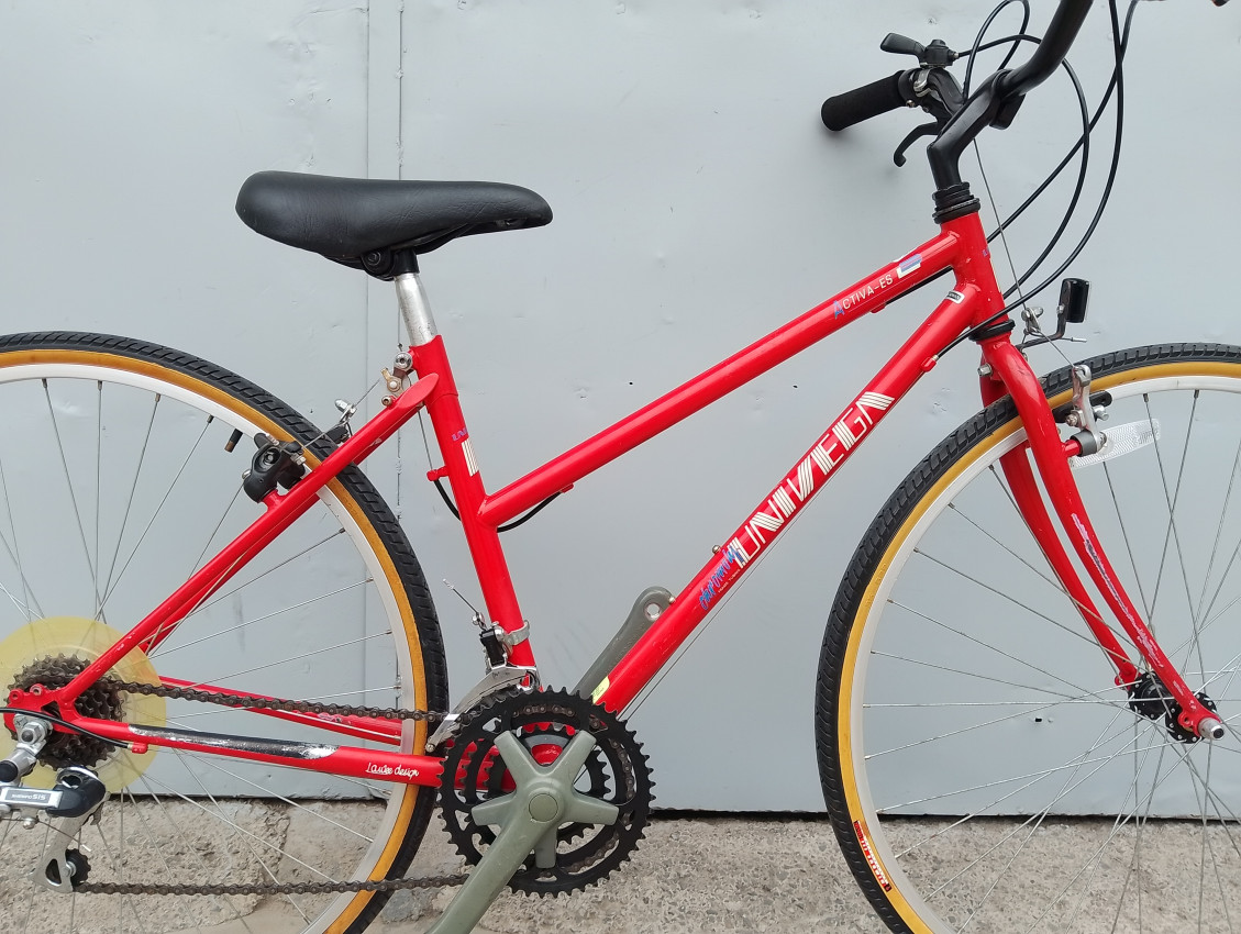 High quality used hybrid bike. Wheel size 700c. Frame material steel.Top tube 21', seat tube height 17'. Gear system 3x6 with thumb shifts. Cog type freewheel. Other features: front quick release