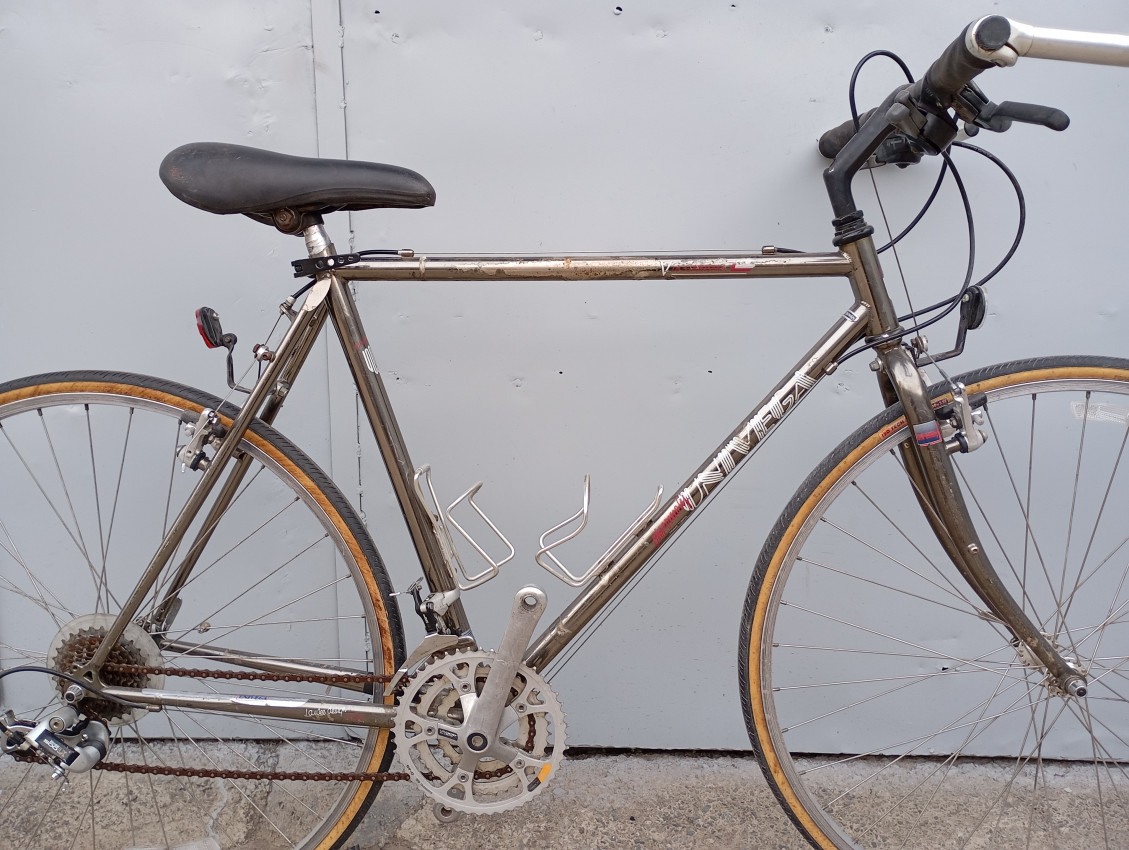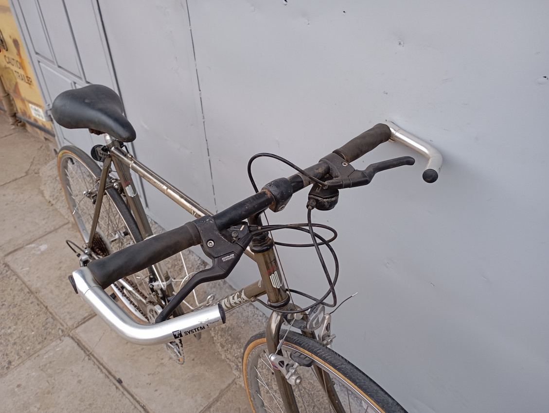 High quality used hybrid bike. Wheel size 700c. Frame material steel.Top tube 22', seat tube height 21'. Gear system 3x7 with trigger shifts. Cog type cassette. Other features: all wheels have quick release, sealed BB.