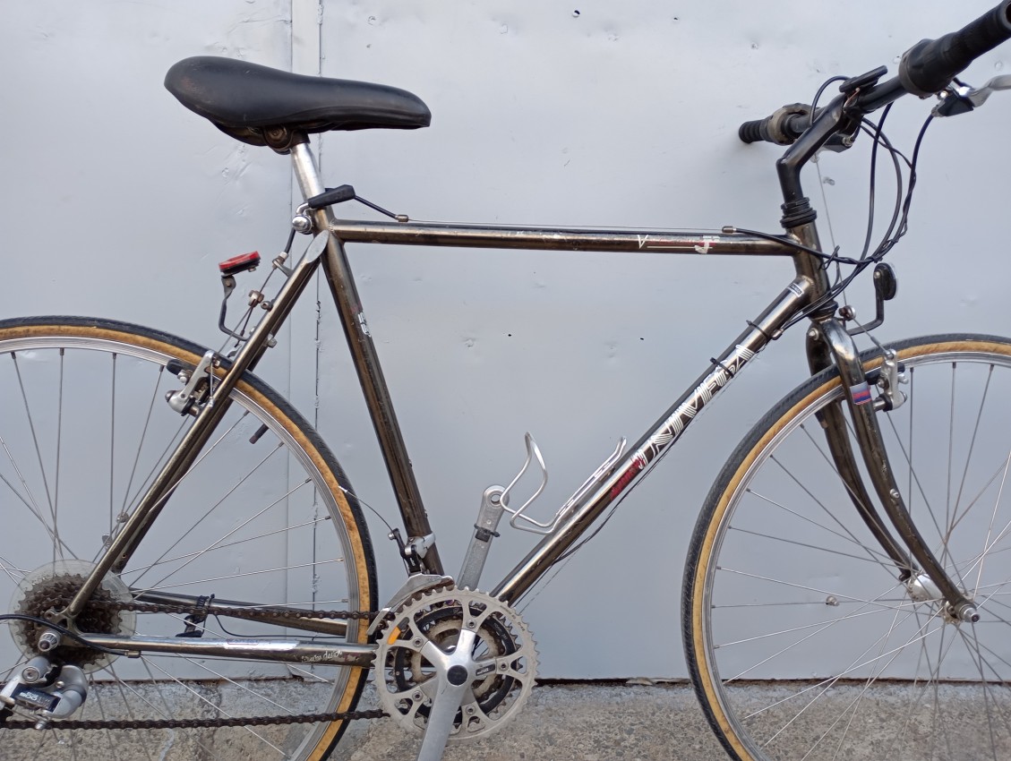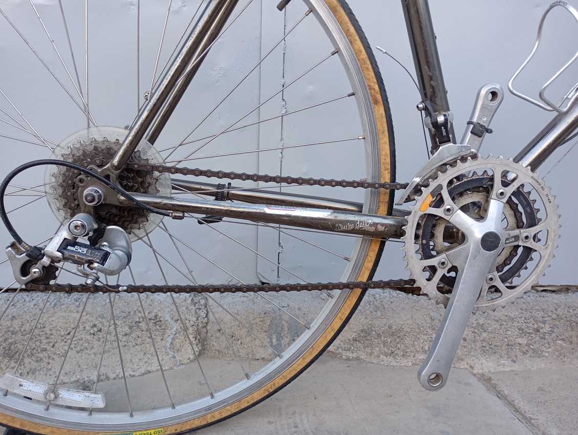 High quality used hybrid bike. Wheel size 700c. Frame material steel.Top tube 22', seat tube height 21.5'. Gear system 3x7 with grip shifts. Cog type cassette. Other features: all wheels have quick release.