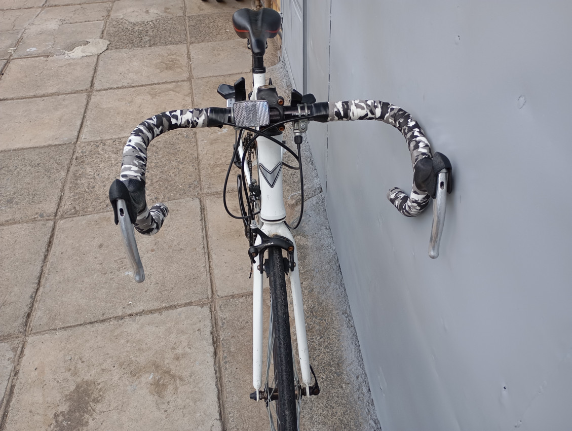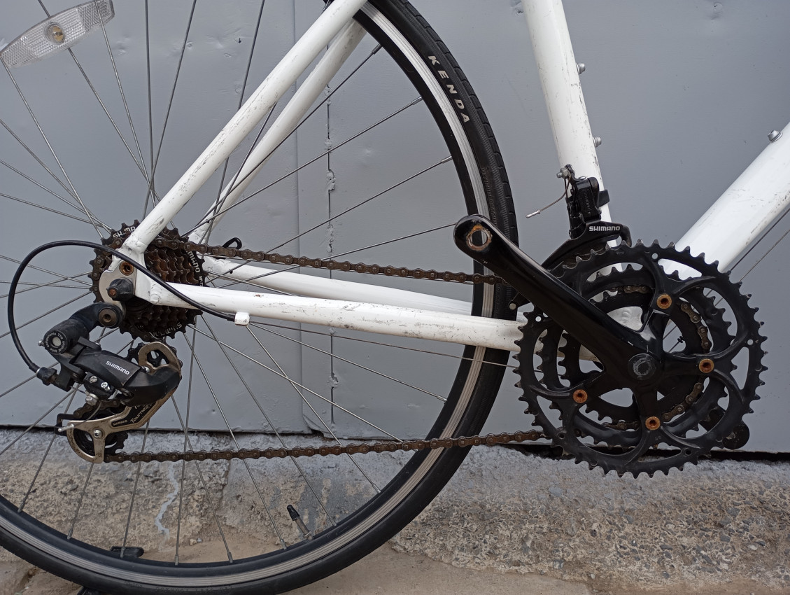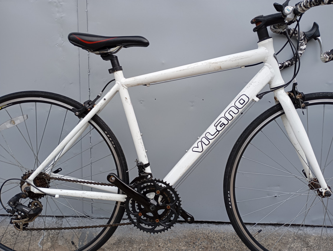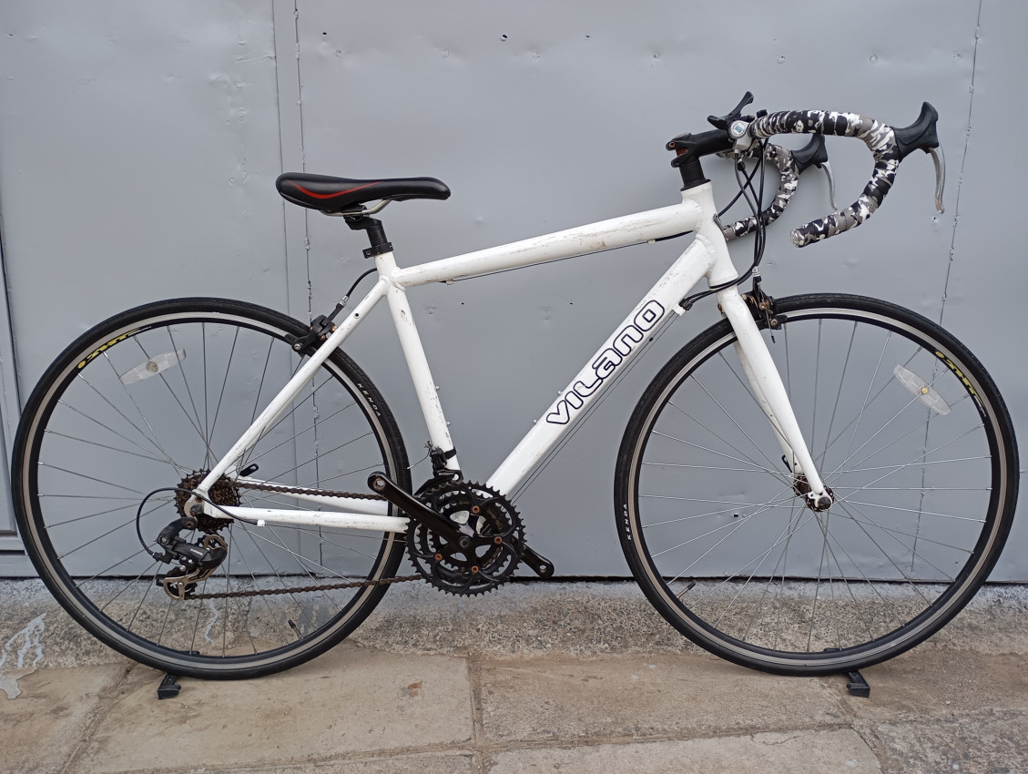 High quality used race bike. Wheel size 700c. Frame material Aluminium with steel fork.Top tube 52cm, seat tube height 50cm . Gear system 3x7 with shimano thumb shifters. Cog type freewheel. Sealed bearing BB. Quick release on both wheels.